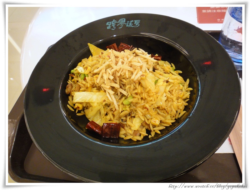 搭配川味辣片與高麗菜拌炒, 小辣又帶點蔬脆的口感頗順口.